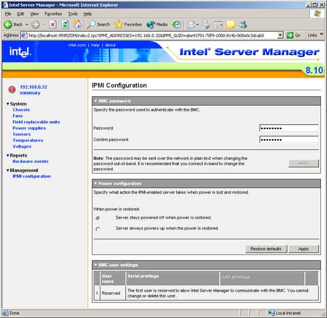 Intel Server Manager 8.1 connecting to iNET1640 |