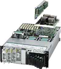 - ServerWorks Grand Champion HE Chipset providing an integrated I/O bridge and memory controller, and a flexible I/O subsystem core (PCI) optimized for multiprocessor systems and standard high-volume (SHV) servers.